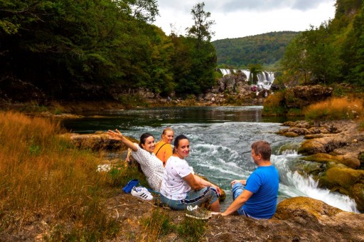 Subota je navečer. Mi sjedimo daleko od te gomile i šušura, na obali jedne druge smaragdne ljepotice: Une.