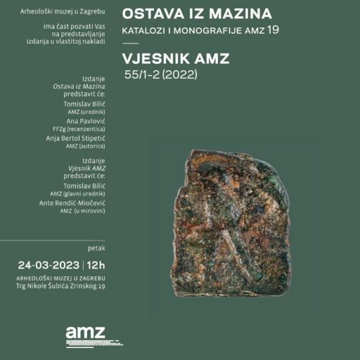 U petak, 24. ožujka 2023. održat će se predstavljanje dva izdanja u nakladi Arheološkog muzeja u Zagrebu. Predstavljanje knjige Ostava iz Mazina i 55. broja 3. serije Vjesnika Arheološkog muzeja u Zagrebu (VAMZ) održat će se u velikoj dvorani na prvom katu Arheološkog muzeja u Zagrebu s početkom u 12 sati.