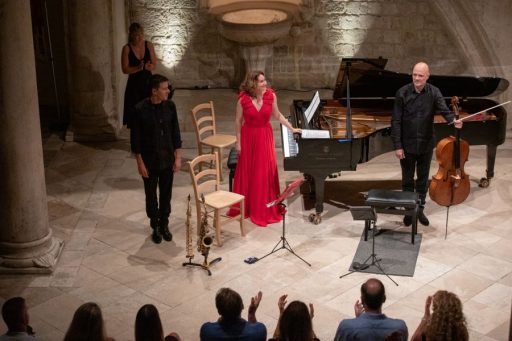 Dubrovnik, 13. kolovoza 2023. – Posebnu glazbenu festivalsku večer priredili su sinoć, 12. kolovoza violončelist Eckart Runge, pijanistica Martina Filjak i saksofonist Gordan Tudor oduševivši brojnu publiku u atriju Kneževa dvora virtuoznom izvedbom skladbi Ástora Piazzolle, Georgea Gershwina, Nikolaja Kapustina i Gordana Tudora.