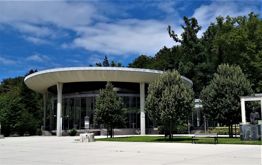 Nas je Rogaška Slatina dočekala vremenom koje je mirisalo na kišu. Oblaci i sunce su se smjenjivali pa smo odlučili odmah krenuti u kratki obilazak, što se poslije pokazalo kao dobra ideja. Obilazak smo počeli na malom platou usred kojeg stoji Paviljon Tempel. Ovo klasicističko zdanje ovih ljetnih večeri zajedno s platoom služi kao mjesto održavanja raznih kulturnih događanja u okviru Aninog festivala. Nedaleko paviljona, također na platou nalazi se ranije spomenuti kip sv. Ivana Nepomuka. Plato sa sjeverne strane obrubljuju visoko moderno zdanje Medicinskog centra ispred kojeg je spomenik Borisu Kidriču (revolucionaru, narodnom heroju i prvom predsjedniku Vlade Narodne republike Slovenije) te s njim spojena ovalna zgrada Pivnice mineralne vode.
