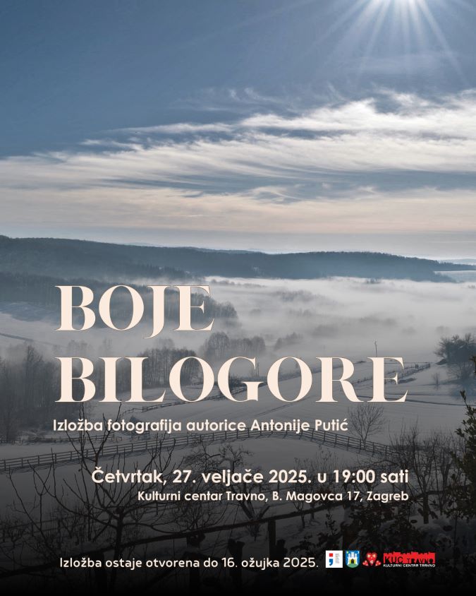 Izložba „Boje Bilogore“ podijeljena je u četiri tematske cjeline: “Zima”, “Arhitektura”, “Priroda” i “Životinje”. Uz fotografije bit će izloženi i predmeti koji dodatno dočaravaju tradicijski duh Bilogore, povezujući prošlost i sadašnjost kroz vizualnu i materijalnu baštinu. Osim očaravajućih fotografija koje pričaju priču o Bilogori, uživat ćete i u nastupu KUD-a Veliko Trojstvo s Bilogore, a pred vama će biti i jedinstveni predmeti iz privatne zbirke Ivana Vinkovića, strastvenog sakupljača narodnog blaga s Bilogore. Ne propustite priliku doživjeti čari ovoga kraja kroz oči njegovih zaljubljenika!