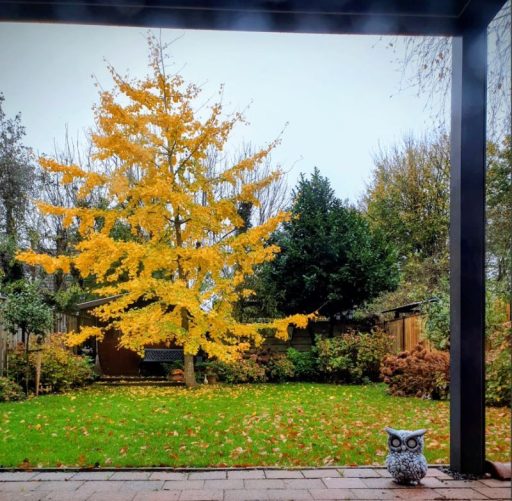 Prije desetak godina, dok sam bio u Puli, naišao sam u jednom rasadniku na Ginko Bilobu visoku oko 60 centimetara. Nije mi trebalo puno razmišljanja – za 35 kuna sam ga odmah kupio i povezao golubicinim Volvom u Holandiju. U međuvremenu, moje drvo je naraslo na nekih deset metara i sada krasi moj (bolje reći golubicin) vrt. Raste malo ukoso jer kod nas vjetar često puše sa jugozapadne strane, pa ga je malo nakrivio – baš kao u onoj pjesmi: “Šešir moj, šešir moj, ukošo. Nosio bih, al’ mi ne da moj poso.”