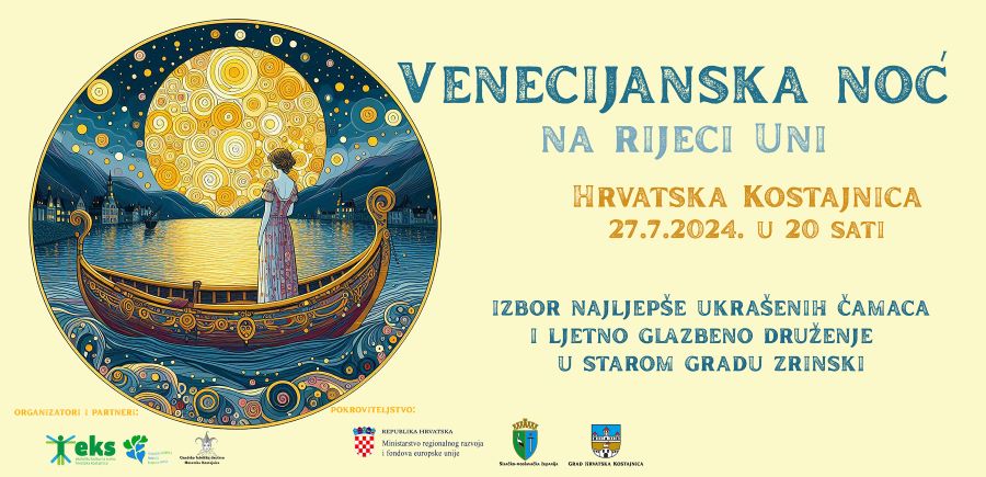 Ekološko kulturna scena EKS Hrvatska Kostajnica ponovno oživljava tradicionalnu manifestaciju Venecijanska noć, koja će se održati u subotu, 27. srpnja 2024., u Hrvatskoj Kostajnici. Venecijanska noć je kulturno turistička manifestacija prilikom koje se ukrašavaju riječni čamci te se potom vrši izbor najljepše ukrašenih. Danas zapravo nitko u Hrvatskoj Kostajnici sa sigurnošću ne zna kako je …