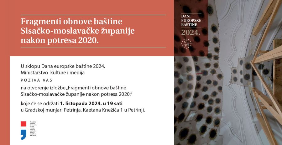 Nastavite čitati 1. listopada 2024. – Otvorenje izložbe „Fragmenti obnove baštine Sisačko-moslavačke županije nakon potresa 2020.“ u Gradskoj munjari u Petrinji